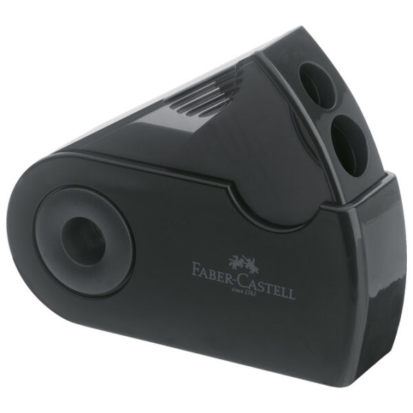 PVC; s PVC kutijom; 2 rupe; izmjenjivi nož; sa sigurnosnim vijkom; visokokvalitetno za jednostavno i čisto šiljenje; ergonomsko; za trokutaste, šesterokutne i okrugle standardne i jumbo olovke (grafitne i drvene bojice); poklopac sprečava ispadanje otpada