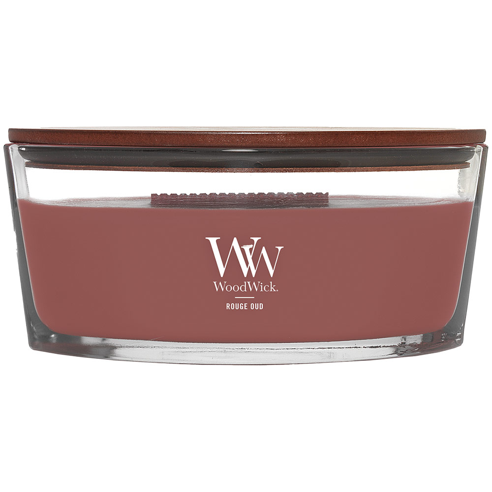 miris raskošne teksturirane ruže mjesečarke, začina i ouda; drveni fitilj koji stvara nježni i smirujući zvuk vatre koja pucketa; sastav: parafinski i sojin vosak s aromom obogaćenom esencijalnim uljem; u staklenoj posudi; vrijeme gorenja 30-40 sati; dimenzije 19x9x12 cm