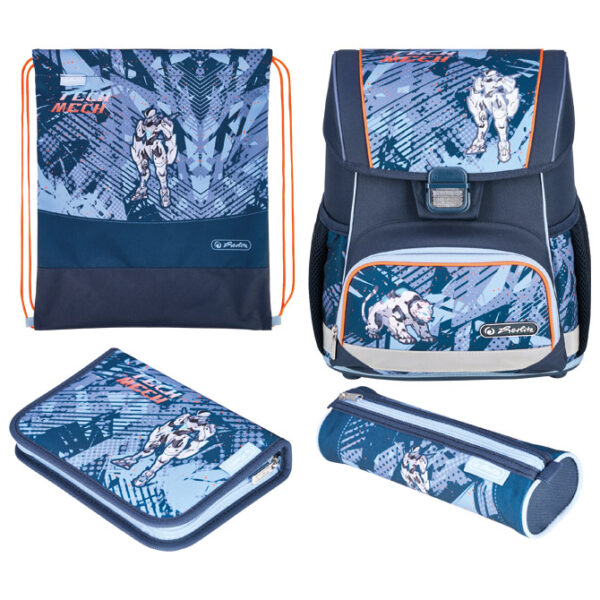 sadrži: torbu školsku, dimenzija: 37x31x22 cm; težina: 900 g; kapacitet: 17 l; ergonomski oblikovan leđni dio s mrežastom tkaninom za maksimalan protok zraka; podesive naramenice; kopča na klik reflektirajuća; visinski podesivi prsni remen; stabilna donja ploča; reflektirajući materijalil; veliki unutarnji pretinac sa posebnim pretincem za knjige; 1 prednji džep i 2 džepa sa strane; vrećicu za tjelesni, pernicu praznu 1 zip 2 preklopa za 16 komada pribora i pernicu vrećicu okruglu