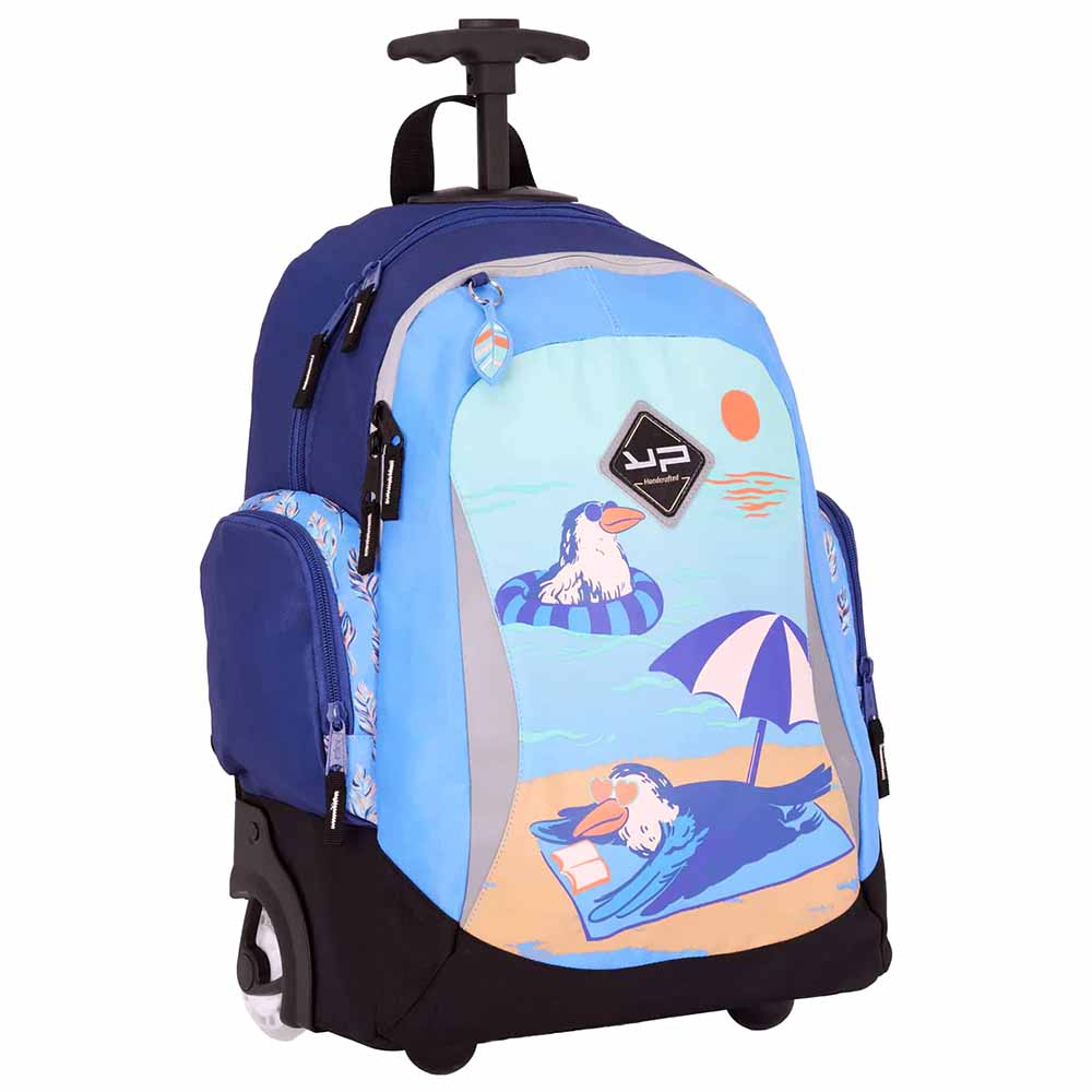 materijal reciklirani poliester 600D, izrađen od plastičnih boca; dimenzije 44x31x19cm; teleskopska ručka; 2 svjetleća kotača; podesive podložene naramenice; spremnik za naramenice; 2 pretinca; 2 bočna džepa; jamstvo 2 godine