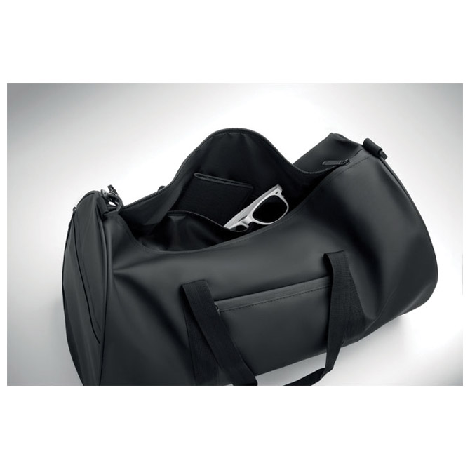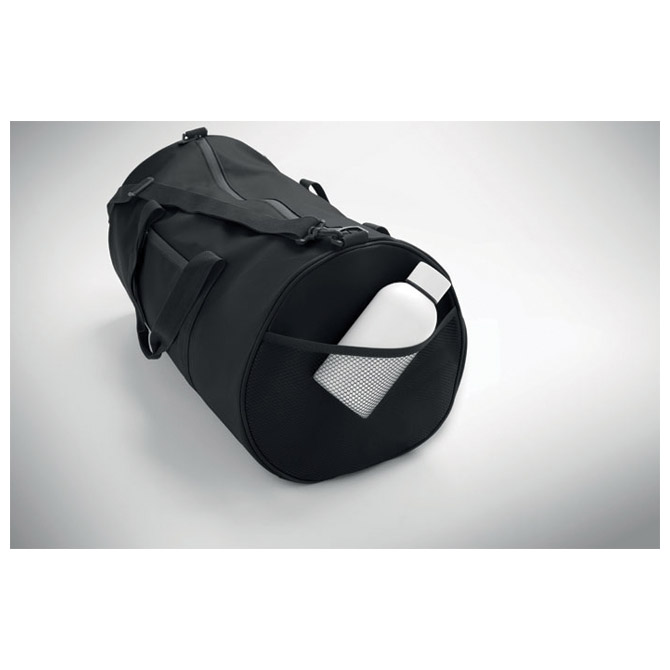 Putna torba od 600D RPET poliestera s PU premazom. Prednji džep s patentnim zatvaračem. Unutarnja podstava od 210D RPET poliestera. 1 bočni pretinac s patentnim zatvaračem / 1 bočni mrežasti pretinac. Unutrašnji džep s patentnim zatvaračem.Dim: 51X28CM