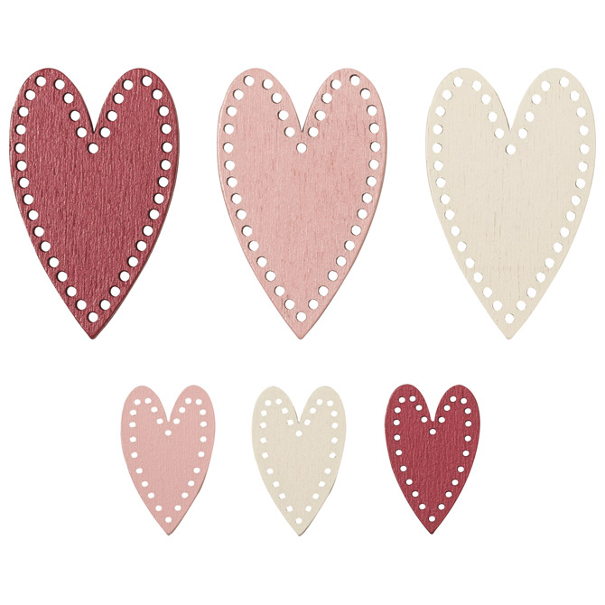 srce duguljasto / 2,5 cm i 4,5 cm / 3 boje; boja slonovače, svijetlo roza i crvena