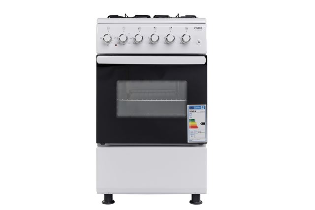 VIVAX samostojeći štednjak FC-40502I WH idealan je odabir za svaku kuhinju jer osvaja modernim izgledom i jednostavnim korištenjem. Jednostavna pećnica s tri programa pečenja pruža vrhunske uvjete za brzo i profesionalno pečenje. Unatoč širini od 50 cm, pećnica je zapremine 52 l i najviše energetske klase A. Prednja vrata štednjaka imaju dvostruko nisko temperaturno staklo. Vrata se mogu potpuno odstraniti radi lakšeg čišćenja. Gornja ploča štednjaka napravljena je od visoko otpornog emajliranog metala s emajliranim držačima posuda. VIVAX samostojeći štednjak FC-40502I WH je plinsko-električni model štednjaka s četiri plinska plamenika. Plinski plamenici opremljeni su zaštitnim sklopom protiv neželjenog istjecanja plina, a paljenje plamenika vrši se pritiskom na tipku za davanje iskre. Standardna oprema pećnice je rešetkasta polica i plitka posuda.