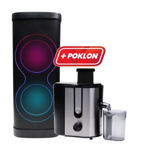 Opremljen USB playerom, MP3 podrškom i PLL FM radiom s mogućnošćumemoriranja stanica, ovaj zvučnik pruža beskrajne mogućnosti uživanjauglazbi. Zahvaljujući RCA LINE-in priključku od 3,5 mm i USB ulazu,možete lako povezati različite izvore zvuka. Sa snažnim 130W RMS audioizlazom koji uključuje dva bas zvučnika i dva 360° visokotonskazvučnika, Vivax BS-1300 nudi nevjerojatan doživljaj zvuka koji će vasosvojiti. Dubok i snažan bas zvuk ispunit će prostoriju energijom ivibracijom. Nema potrebe za brigom o trajanju baterijeza hvaljujućiugrađenoj 12000mAh punjivoj bateriji koja omogućuje do 11sati reprodukcije na baterijskom napajanju pri srednjoj jačini. A smogućnošću punjenja baterije putem adaptera, možete uvijek biti spremniza sljedeću zabavu. Dodatno, uživajte u atmosferi uz LED p romjenjivosvjetlo koje dodaje dozu zabave i stila. Uključena su i dva bežičnamikrofona, omogućujući vam da pjevate karaoke ili jednostavno uživate ubeskrajnim satima glazbe s prijateljima. A s uključenim daljinskimupravljačem, imate potpunu kontrolu nad svojim gla zbenim iskustvom.Iskusite novu dimenziju zabave uz Vivax BS-1300 koji nudi TWS funkcijuza povezivanje dva zvučnika, stvarajući tako impresivan stereo zvuk. Bezobzira jeste li na zabavi kod kuće ili na pikniku u prirodi, VivaxBS-1300 je vaš idealni glazbeni suputnik koji nikada ne razočarava. Uz to dolazi VIVAX HOME sokovnik AJ-400.