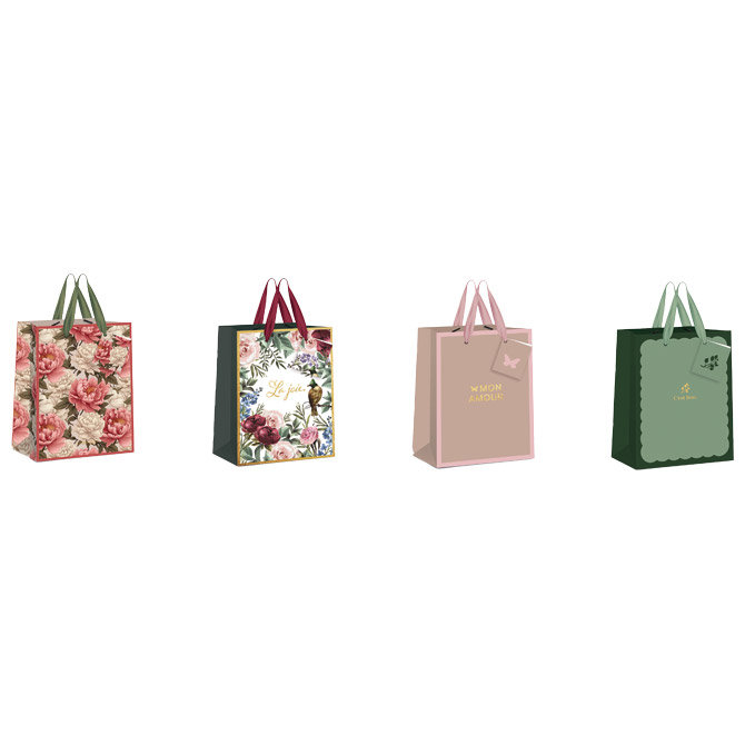 dimenzija: 33x46x10cm; 190 g; ručke: saten; mat završna obrada; ojačano dno; s privjesnicom; sort 4 motiva