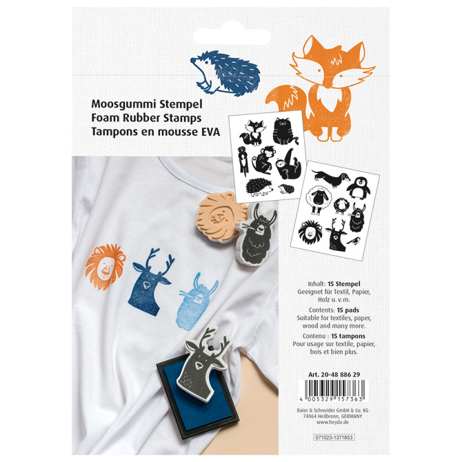 Žig s motivom 15 uzoraka moosgummi Životinje Heyda 20-48886 29 blister!!